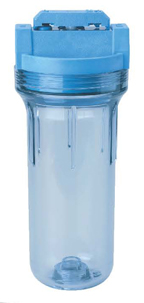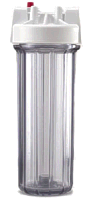 Clear housing & Fits standard ¾" water line - the top cap is 4